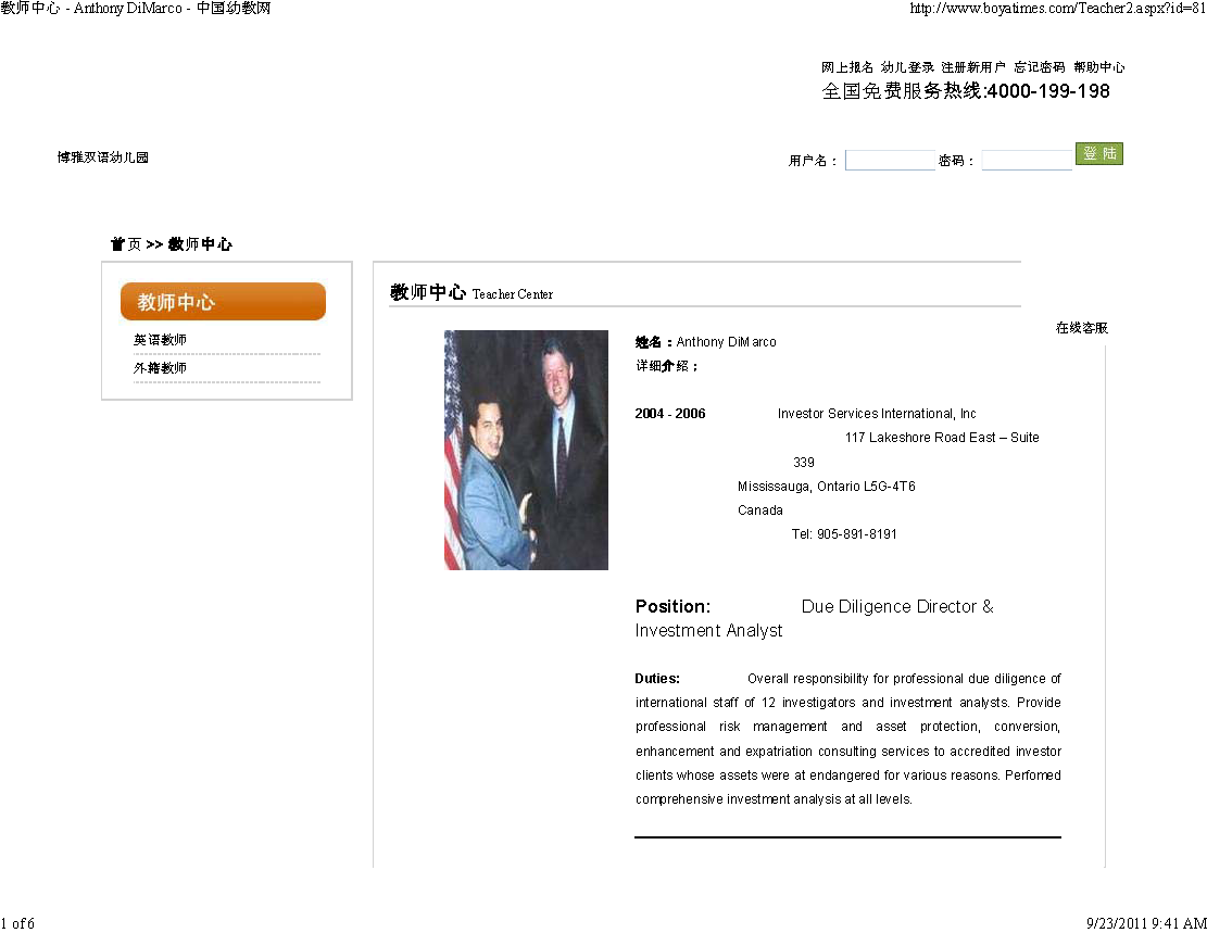 2004 - 2006Note that Dimarco's Investor Services International, Inc. is the entity that registered the chinatradecommission.org and chinatradecommission.com domains on July 9, 2011. See Domain registration.