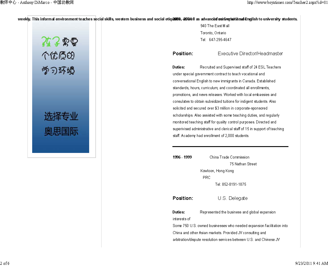Here is another connection: China Trade Commission is "co-sponsoring" "Project Creativity" with Drama Rainbow. See China Trade Commission Co-Sponsors "Project Creativity" for Beijing Kids You think Anthony Demarco might have some affiliation with that organization?